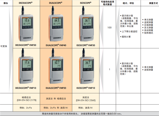 鍍層/底材的種類是選擇探頭非常重要的依據(jù)。另外,鍍層的大致厚度、底材的材料、測量點(diǎn)的面積以及樣品的形狀和表面情況都是選擇探頭時(shí)需要考慮的因素。曲率補(bǔ)償探頭(渦流法)適用于不同曲面的樣品;雙觸點(diǎn)探頭能夠在粗糙的表面上得到準(zhǔn)確的結(jié)果。 FMP1、 FMP20、 FMP30、 FMP40型儀器都可以通過連接不同的探頭來滿足您不同的測量需求。