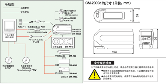 標(biāo)準(zhǔn)配件 | 白色校正板CM-A145,?8mm目標(biāo)罩CM-A146,USB-串口轉(zhuǎn)接線IF-A24, |