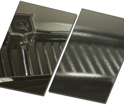 表面紋理可以減弱表面成像的質(zhì)量,而不影響光澤度值。上面的2個面板用傳統(tǒng)的光澤儀測量得到的是同樣的數(shù)據(jù)。